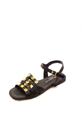 Sandalia en piel guante de pedro miralles, con plantilla de piel suela de cuero, tapa tacon de 2cm, con pala ancha y adornos dorados