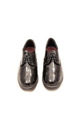 Blucher mujer diseñado en piel color negro con acabado coco y cierre de cordones. Puntera redonda, costuras vistas y suela dentada bicolor en EVA con 3,5 cm. de altura. Incluye plantilla extraíble y tecnología ultraligera que hará que camines sin esfuerzo. Es casual, versátil y perfecto para el día a día.