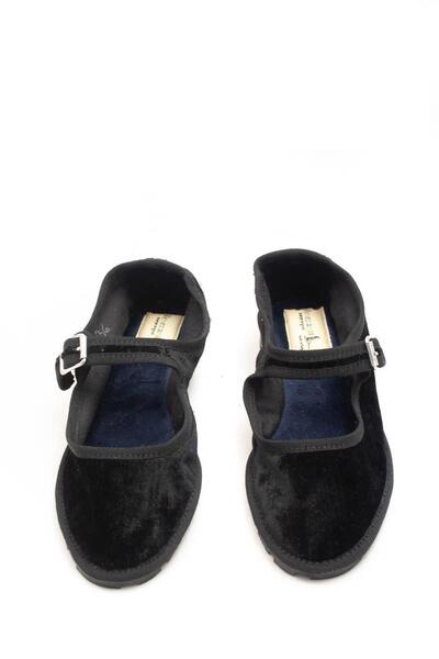 Manoletina en tejido terciopelo negro con hebilla lateral, piso de goma. Son super comodas